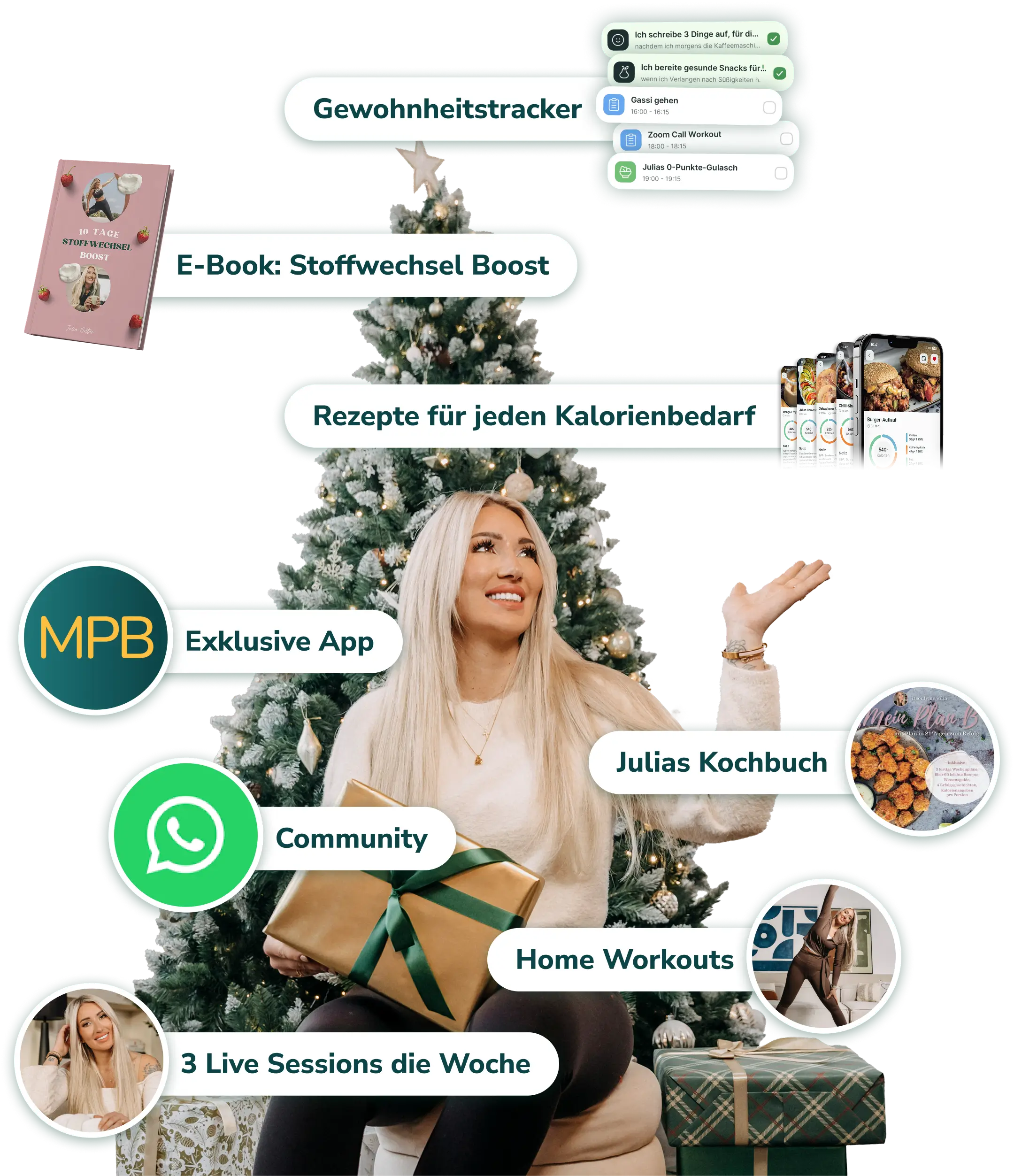 Ob Mindset, Ernährung oder Sport: In unseren regelmäßigen Live-Sessions bekommst du echte Unterstützung – direkt von Julia und dem Team. Persönlich, motivierend, nahbar.